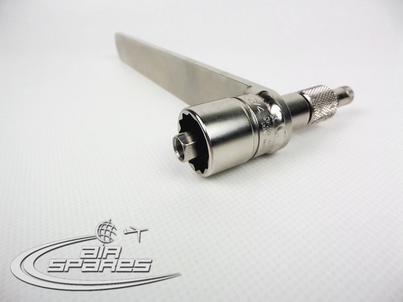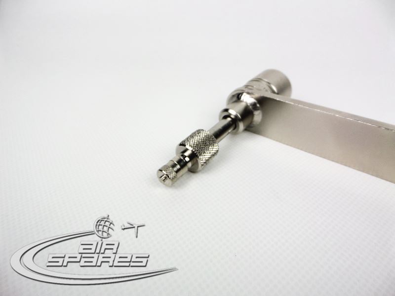 3956572-1 Adapter is used to open and close the nose landing gear strut valve and attach hose for air or nitrogen service on DC-9 and MD80 aircraft.